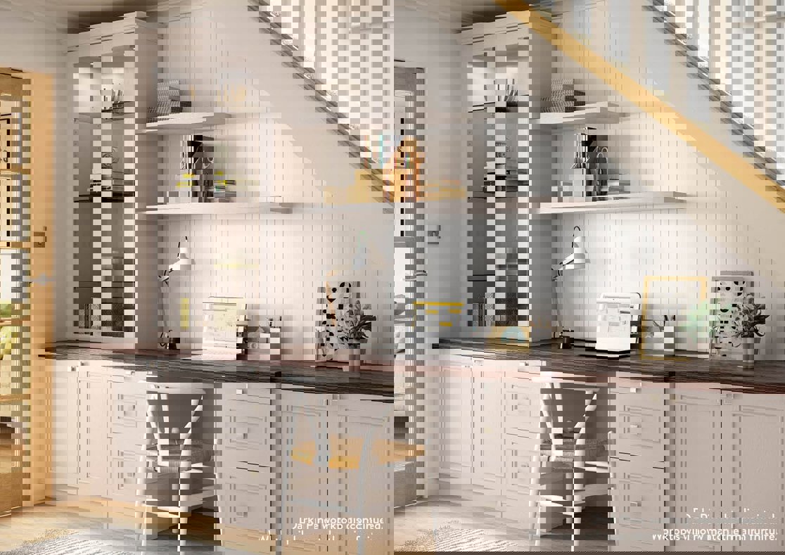If you can’t have a dedicated room, smart use of fitted furniture can make work-friendly spaces from spare corners like under the stairs