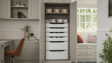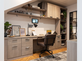 Our home office cupboards and home office storage cabinets provide you with space to store your belongings out of sight, ensuring a sleek look to your office. Similarly, our home office built-ins, such as office shelf storage, home file storage and small office storage, give you the space you need to store all of your important work documents so that everything you need is easily accessible.