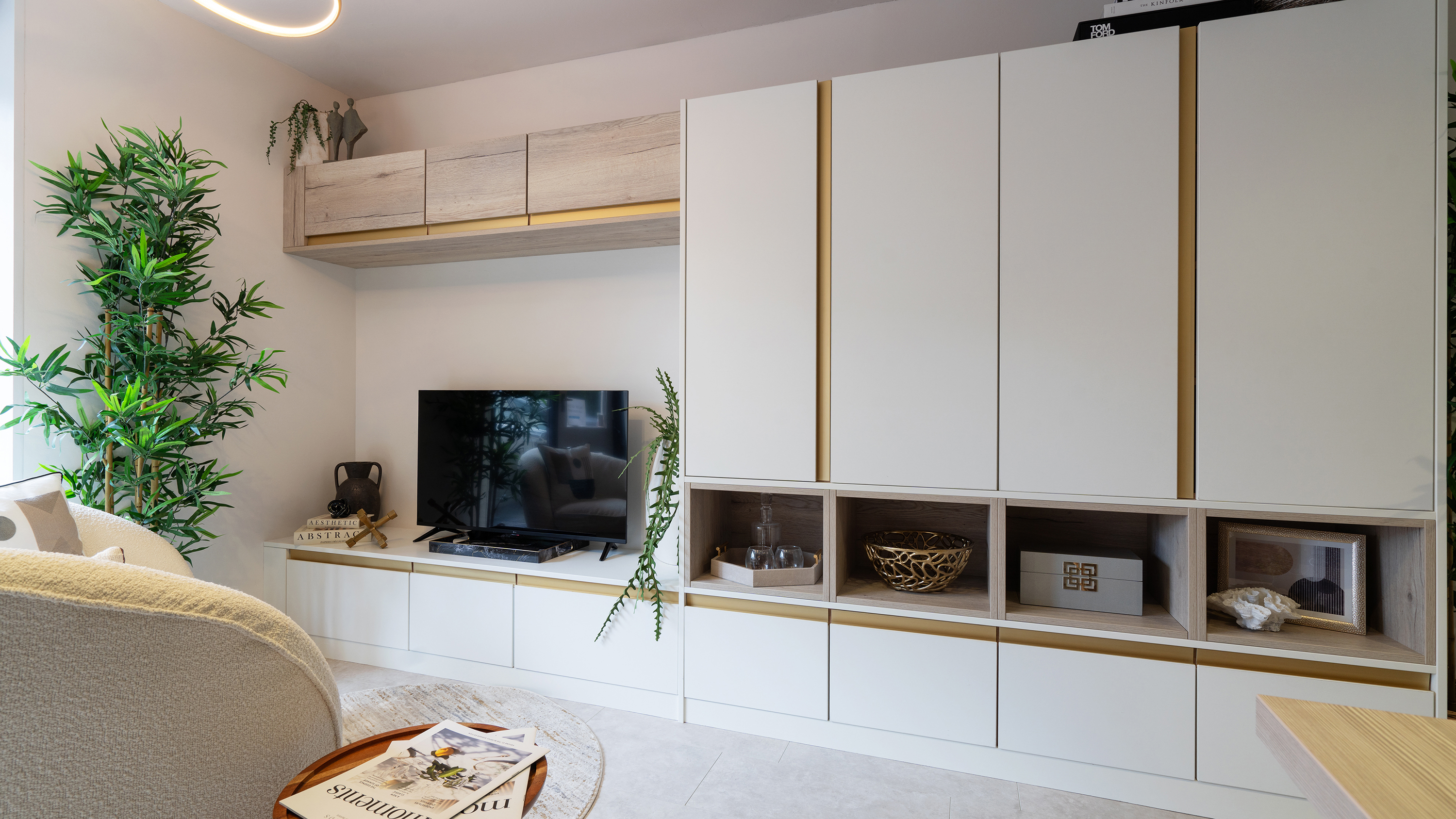 Clean lines and a subtle palette.The balanced design offers perfectly tailored storage with a chic and considered finish.