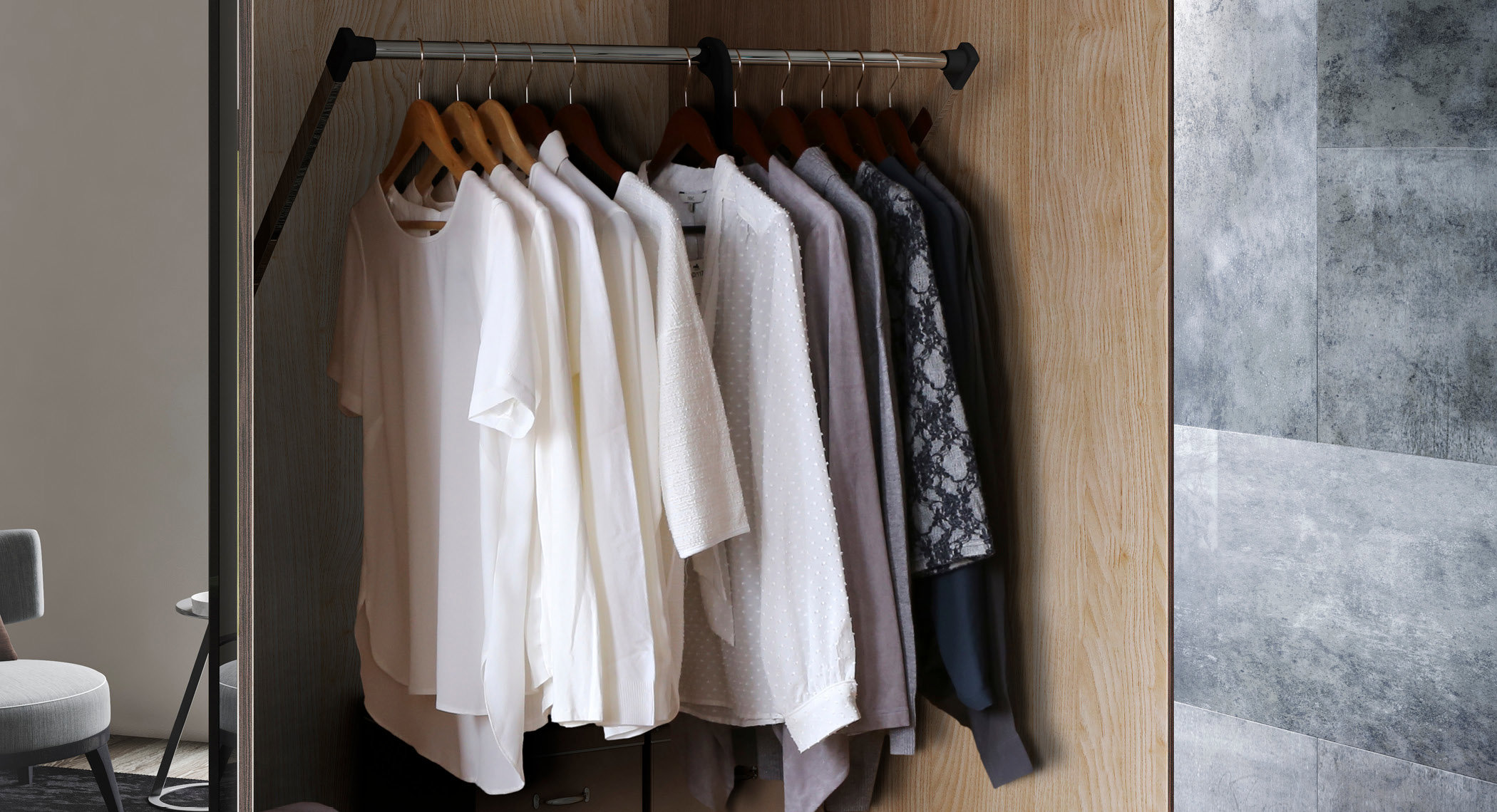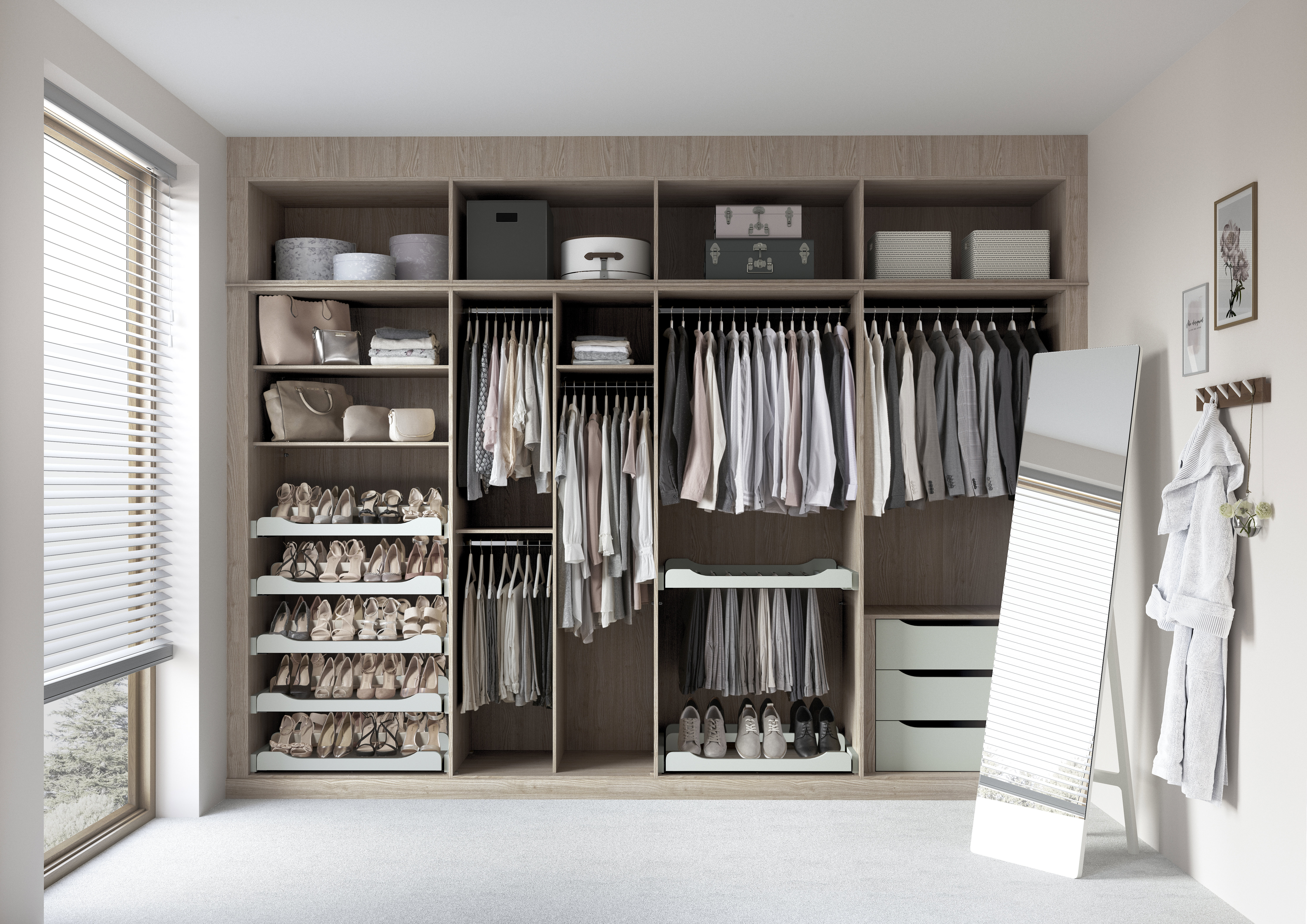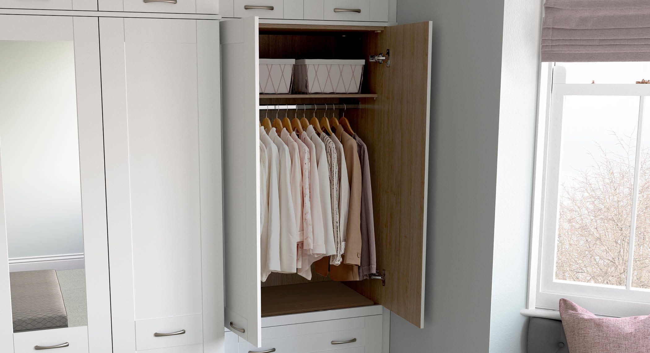 Create a wardrobe in any space with a custom single hanging rail or add a floor-to-ceiling cloakroom for full-length outfits.