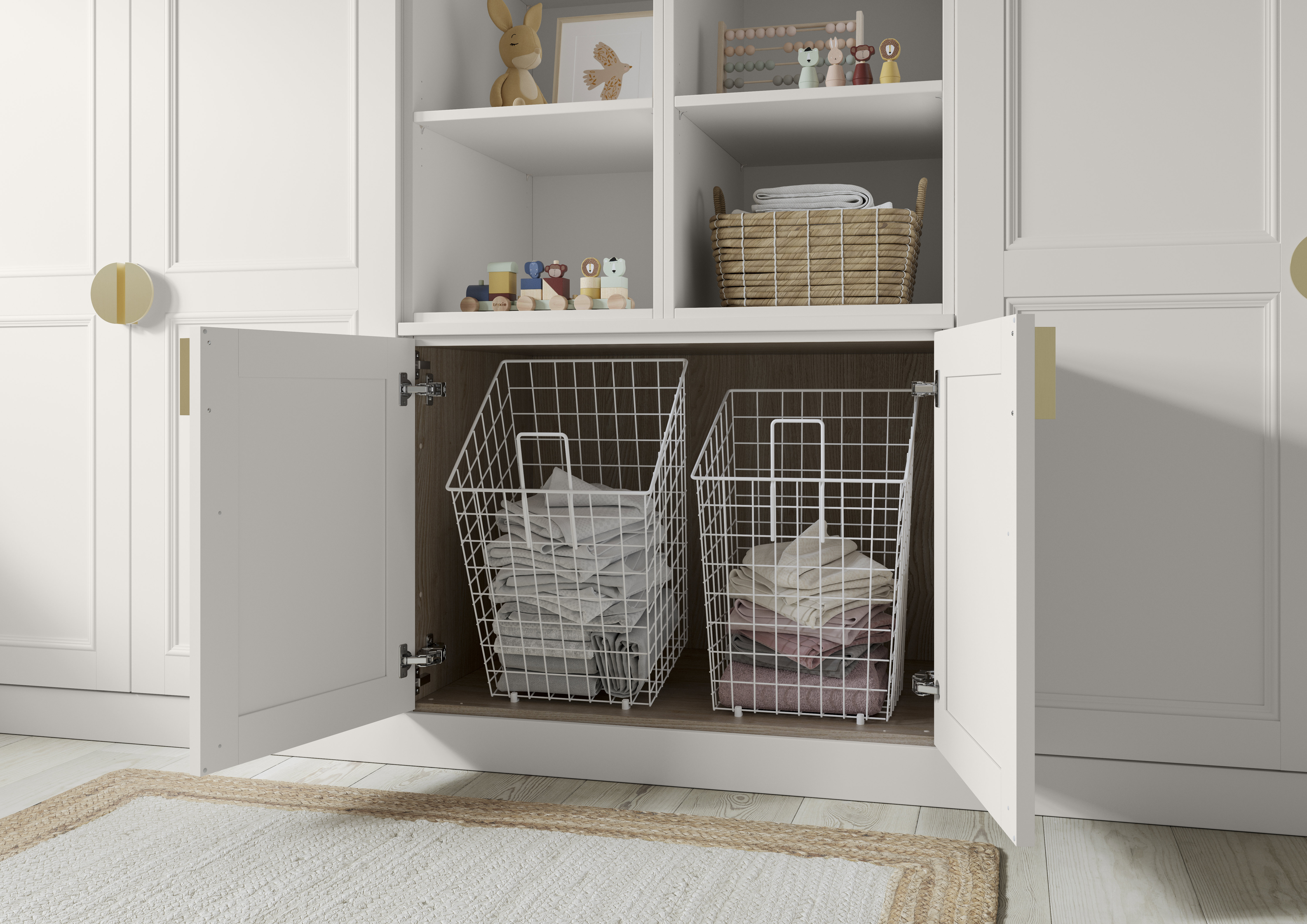 This tilting basket provides easy access to bedding and laundry and makes maximum use of small corners and unused spaces.