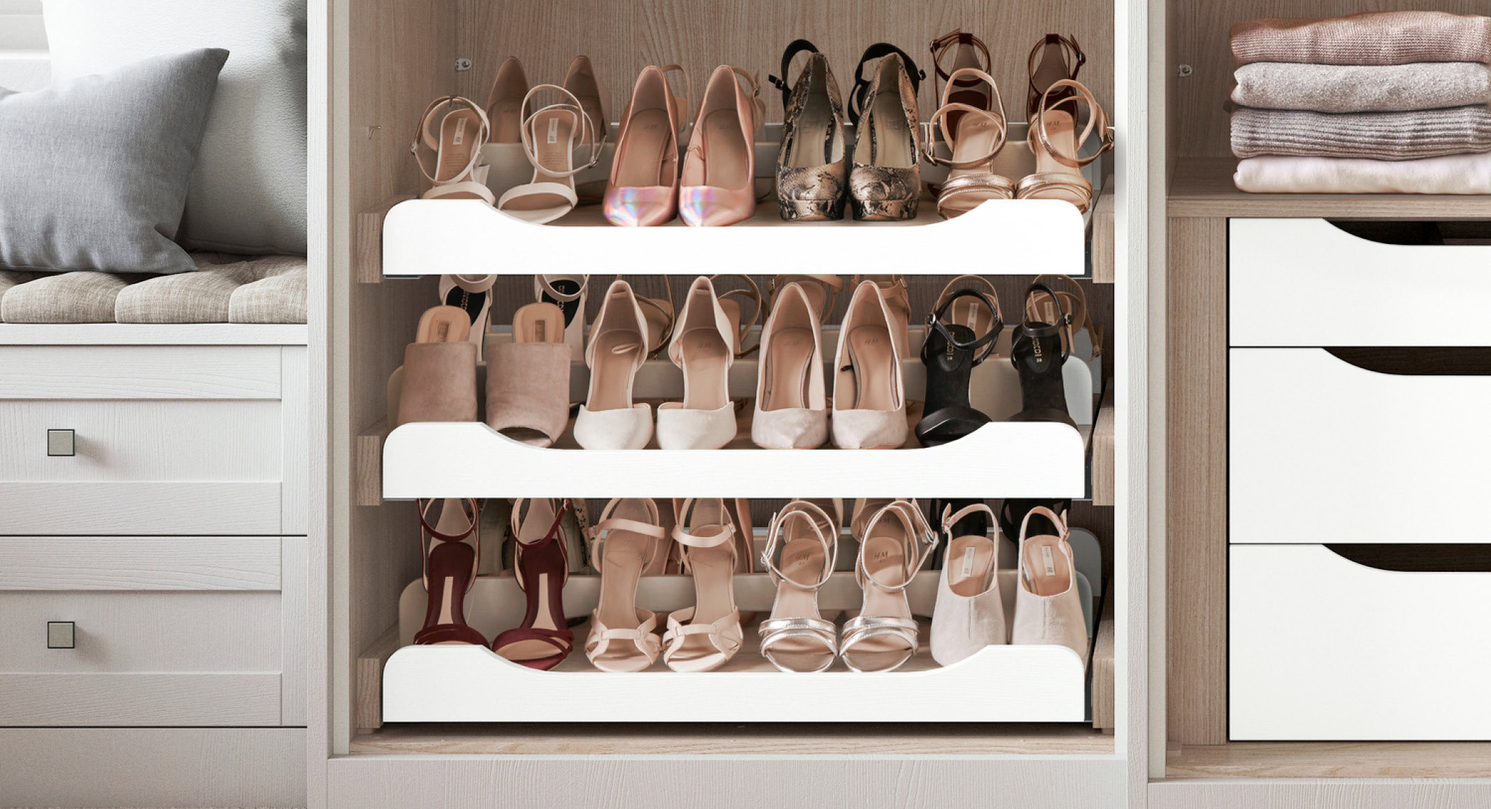 This space-efficient, soft-close shoe rack provides the perfect way to care for your shoe collection and keep your wardrobe clutter free.