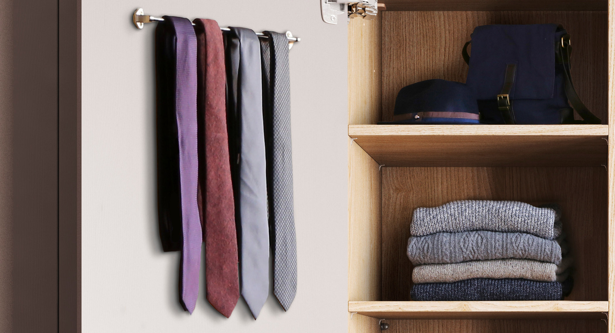 With room to hang all your belts and scarves, this hidden storage rack is an ideal way to keep everyday accessories in shape.