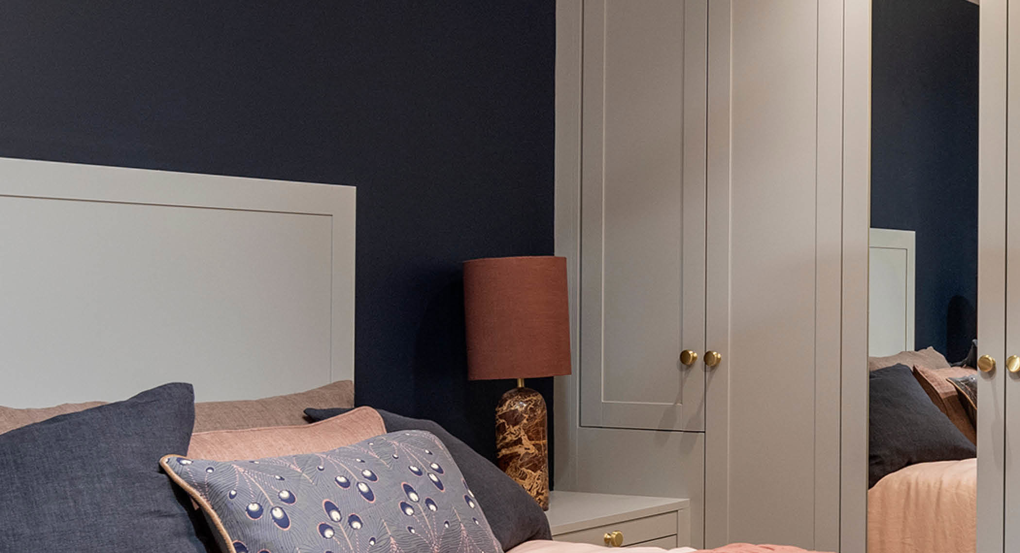 This angled corner wardrobe is a must for smaller rooms and represents just one example of how our expert designers can transform your built-in bedroom storage.