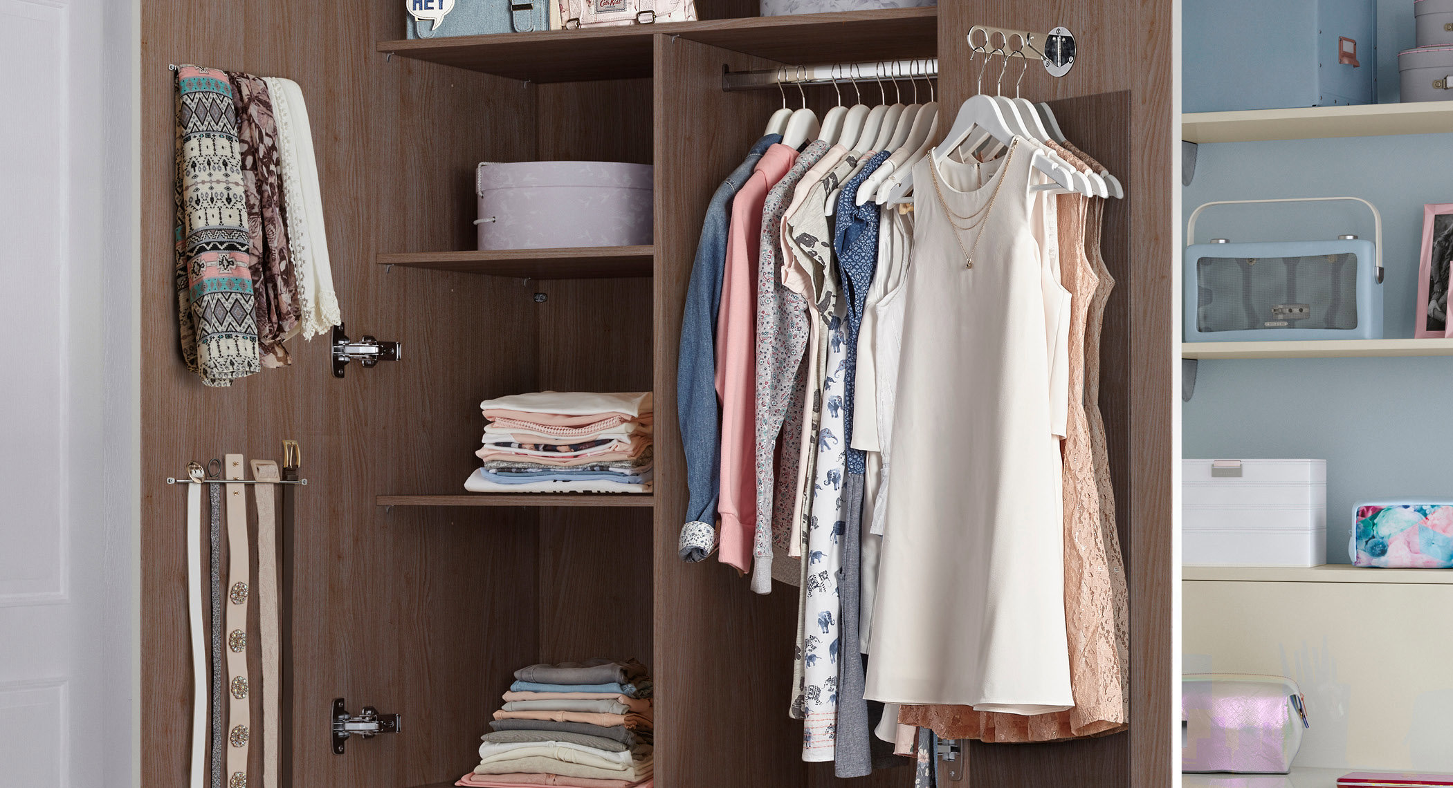Need a wardrobe with room for everything? Our generous double hanging rail offers twice the bedroom storage space.