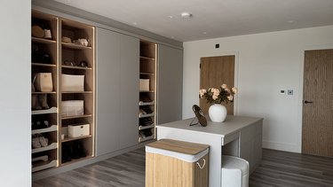 "Having a piece of furniture that is both functional and aesthetic is great. The ease of being able to organise our clothes and accessories and having the space and layout to do so. We love the quality and finish of the furniture and as it's built on site it fits perfectly to the space. We added lights to our wardrobe and mirrors to the inside of the doors which has elevated the space even more. "